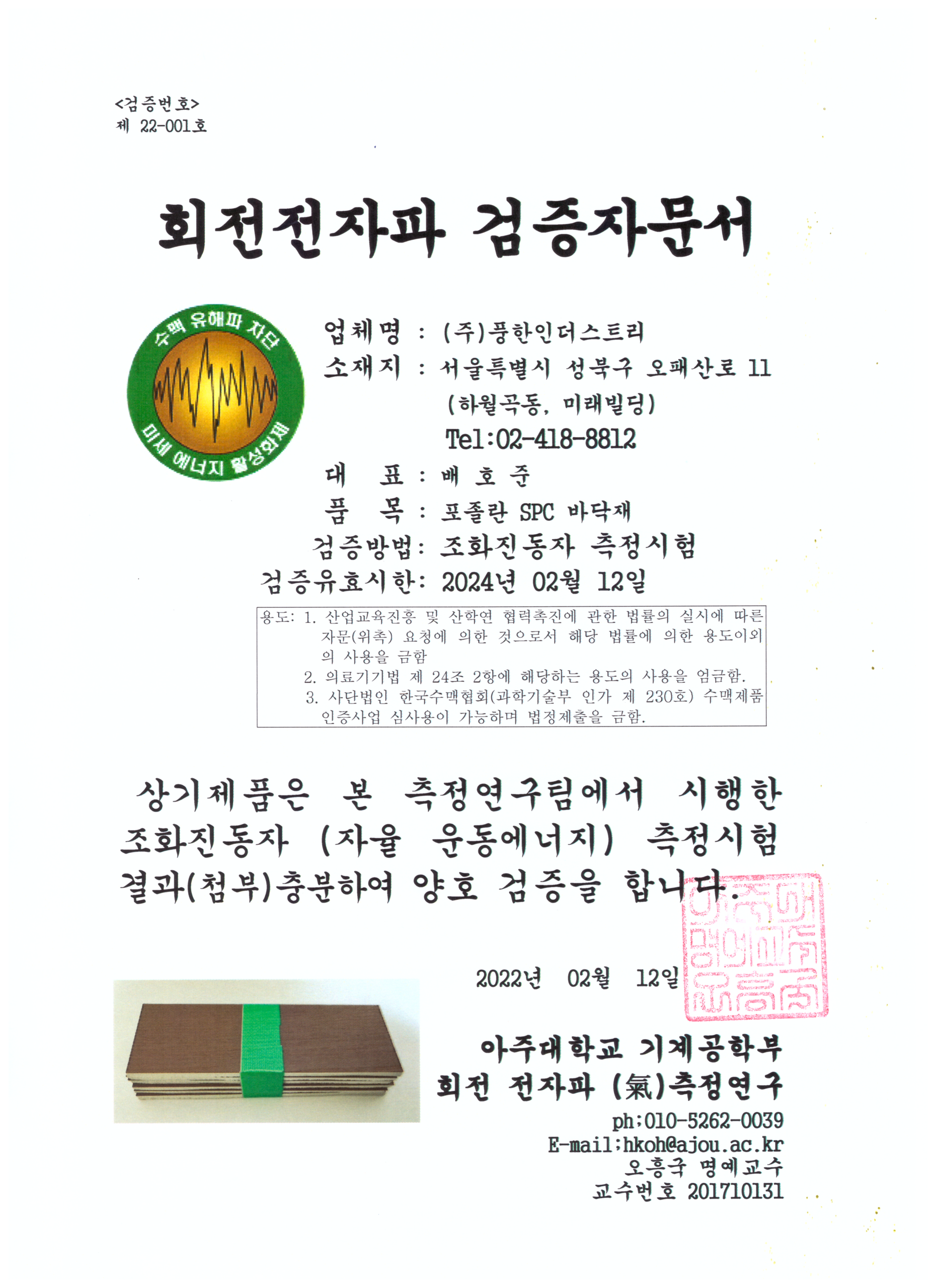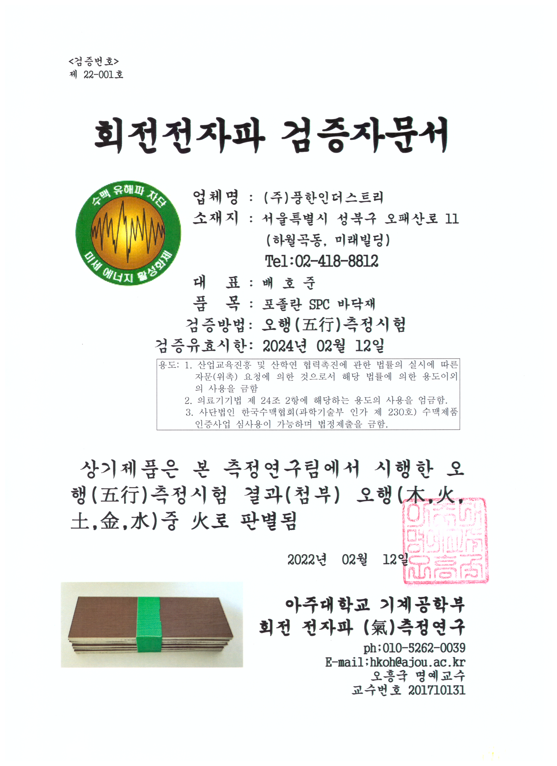 BF(Barier Free) 인증 성적서 및 미끄럼 저항 테스트 완료