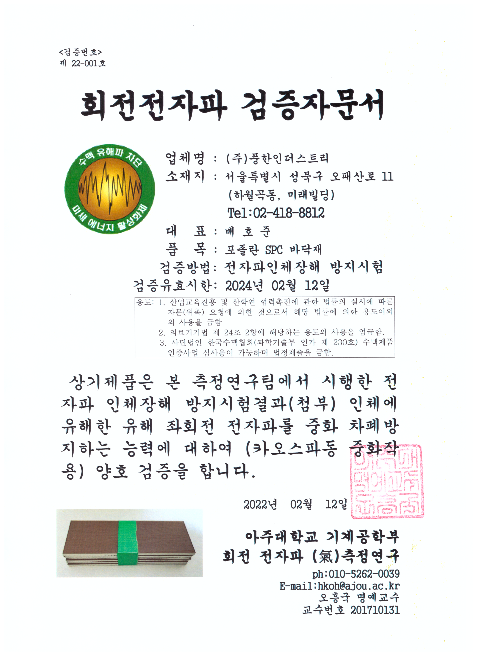 - 새집증후군(폼알데하이드), 라돈 미방출 바닥재